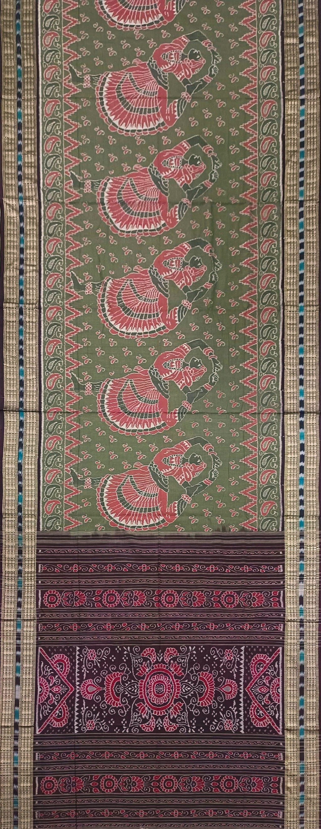 Exquisite Big Nartaki design Sambalpuri cotton saree with work blouse piece, Grey and coffee colors combination