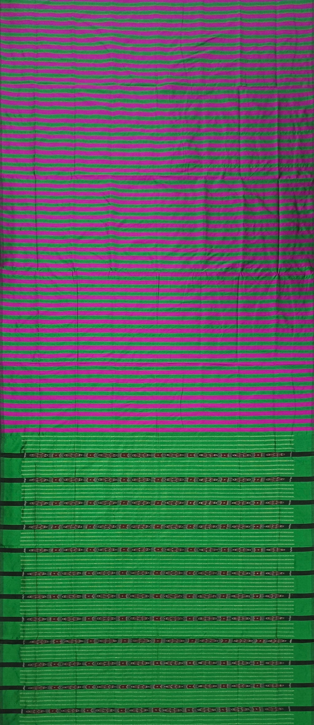 • Body: Body in magenta and green color combination with lining designs. No Boarder, Pallu in green color with traditional sambalpuri design, Blouse piece in green color
