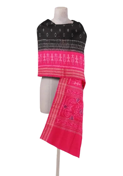 Sambalpuri cotton dupatta, Black Pink Combination