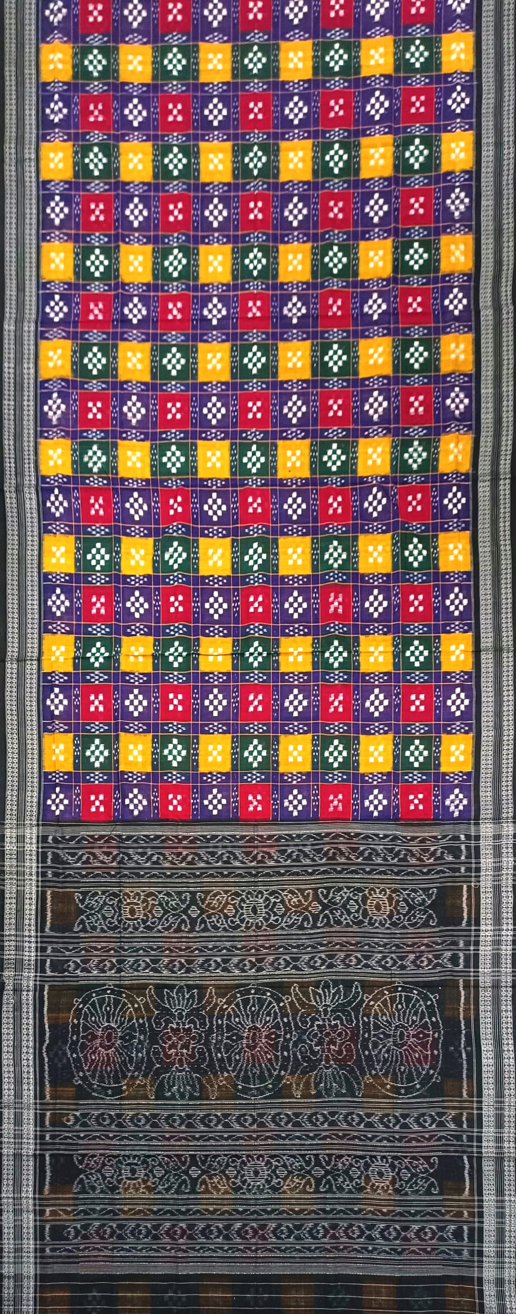 • Pallu in Black color with traditional sambalpuri Designs,