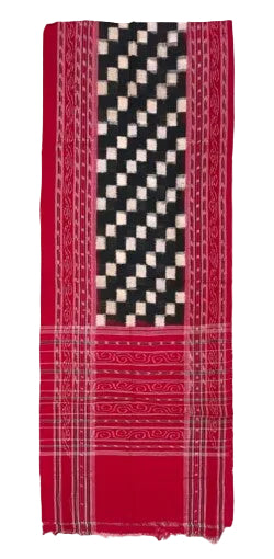 Sambalpuri Cotton Stole (Pure Handloom, Black Red)