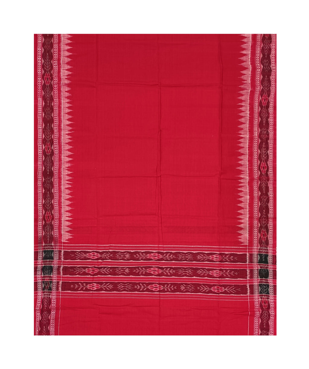 • Body plain in red color base.Border and Pallu in red color with traditional sambalpuri designs.